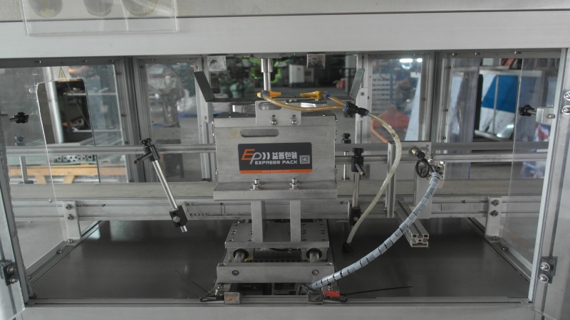 瓶子通過輸送帶進入到切口工位,通過氣缸抱夾固定瓶身,切刀下降至葫蘆口,電機帶動旋...